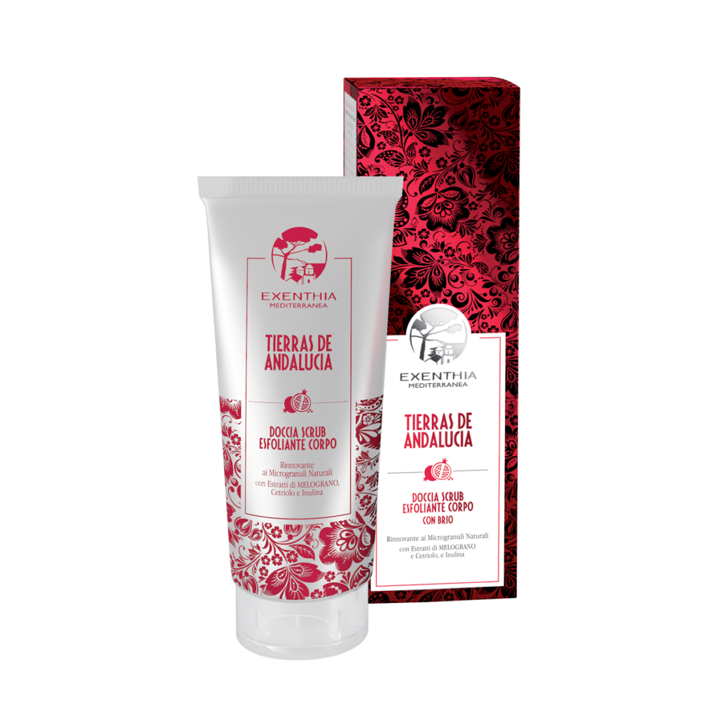 A scrub to use directly under the shower, to gently exfoliate the skin, renewing and breathing life into it with a touch of silk.