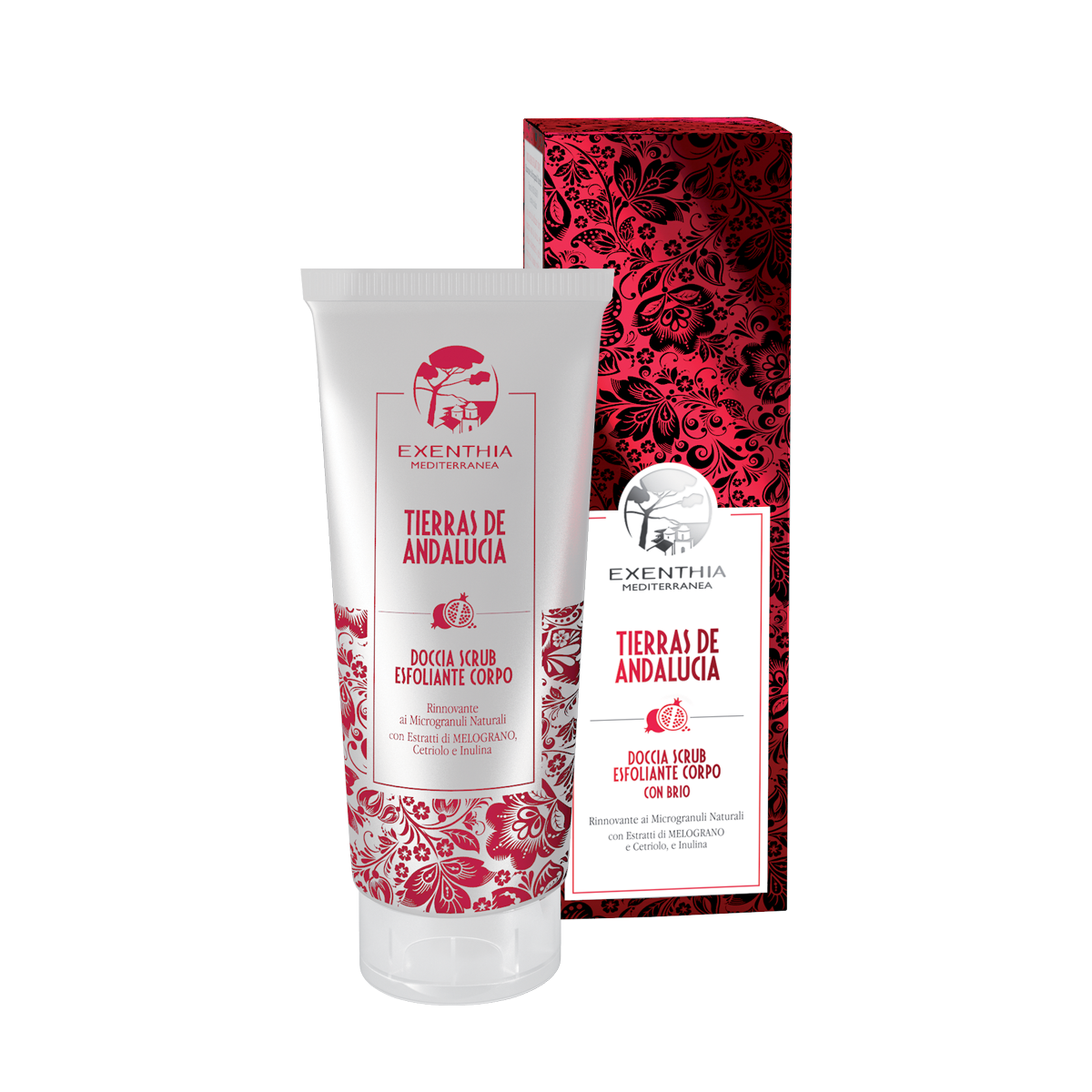 A scrub to use directly under the shower, to gently exfoliate the skin, renewing and breathing life into it with a touch of silk.