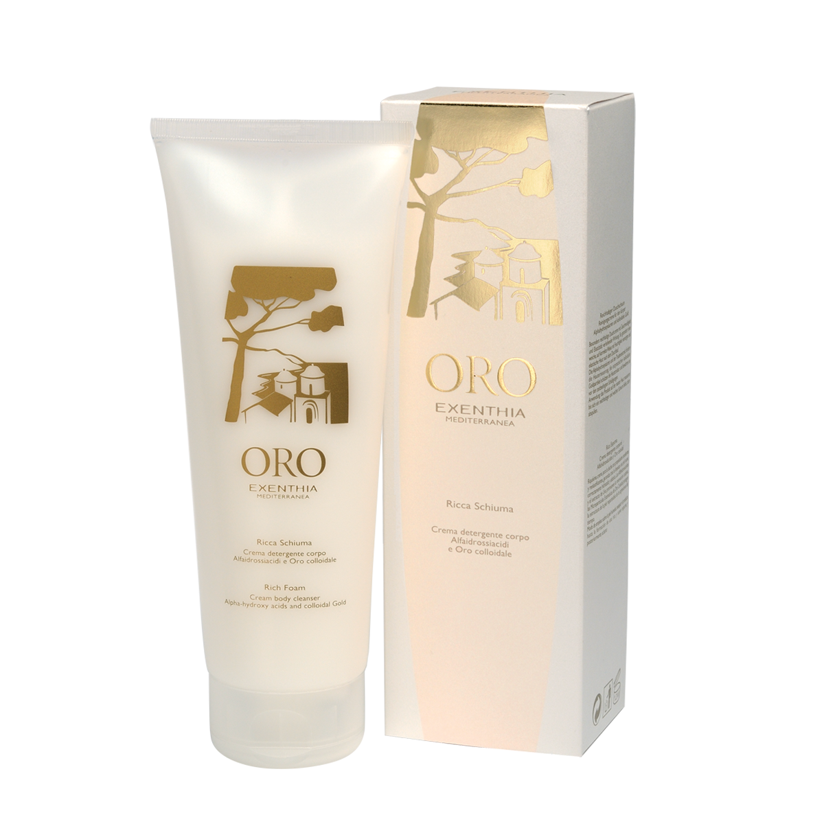 Crema detergente corpo alfaidrossiacidi e oro ColloidaleRicchissima crema per la doccia con proprietà emollienti e rielasticizzanti, garantisce dopo la detersione una pelle morbida, correttamente idratata ed elastica.